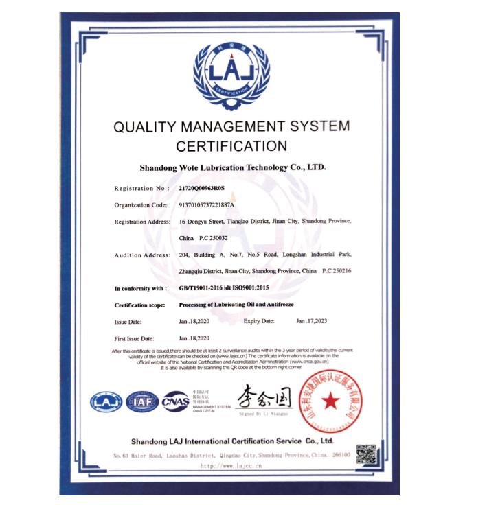 質(zhì)量管理體系認證證書英文版
