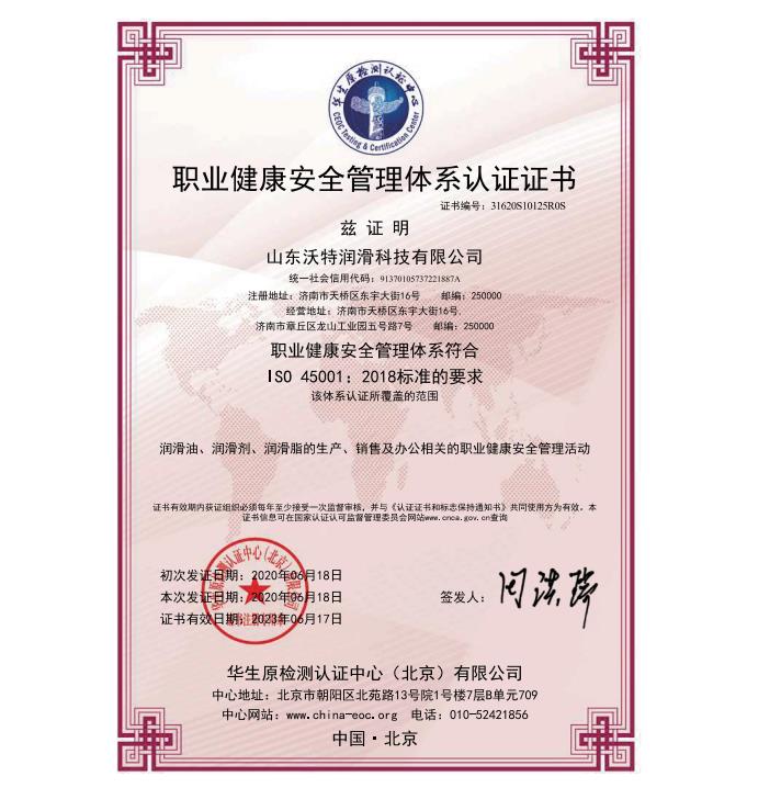 職業(yè)健康安全管理體系認證證書